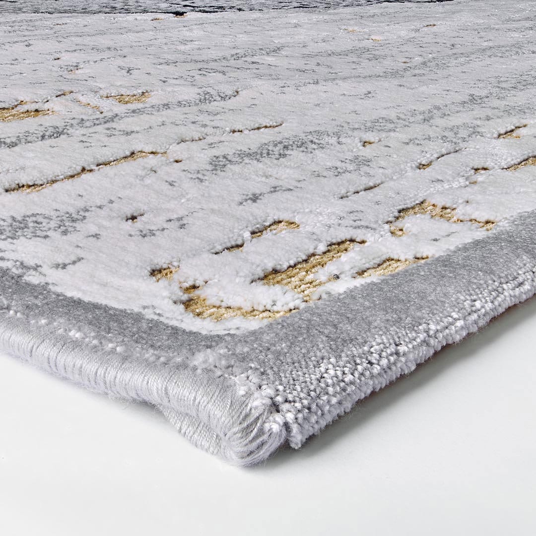 Materials and structure: 50% viscose, 50% polypropylene. Pile height 4 mm, total thickness 7 mm, weight 1300 g/m². Viscose provides a silky sheen and softness, while polypropylene ensures stability, durability, and easy maintenance.
