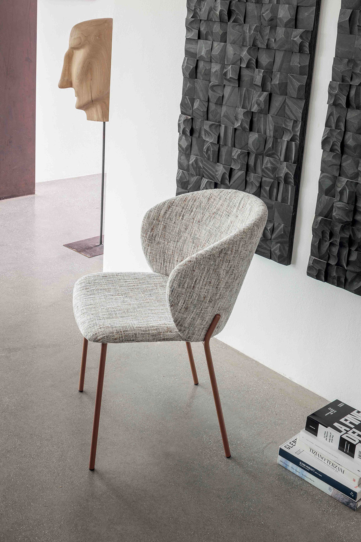 La poltroncina Clo coniuga comfort e ricercatezza, ideale per zone living e spazi contract di alto profilo.