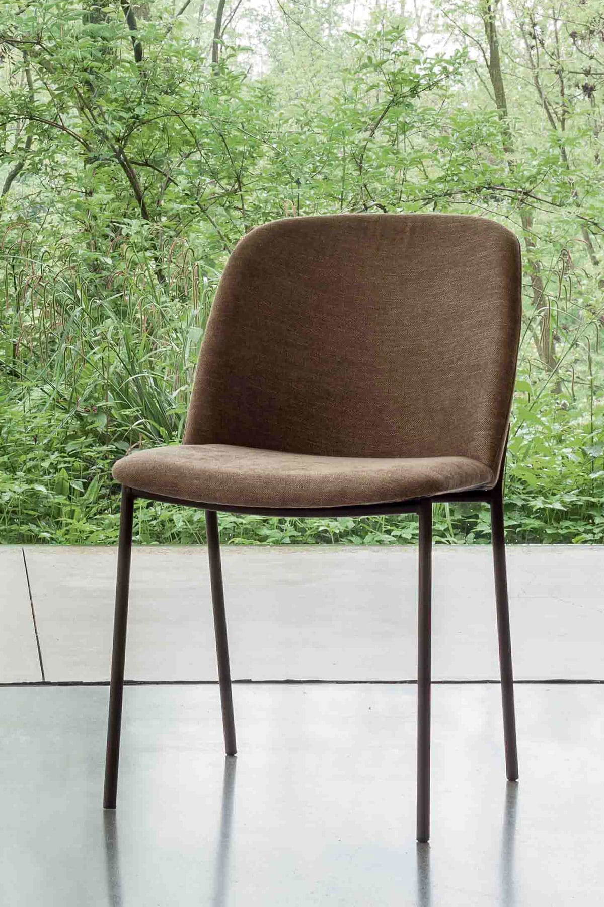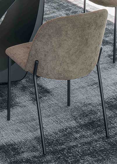 Caratteristiche tecniche: sedia con gambe in metallo verniciato a polvere; scocca imbottita e rivestita; cuciture in tinta; ordine minimo 2 sedie e multipli di 2.