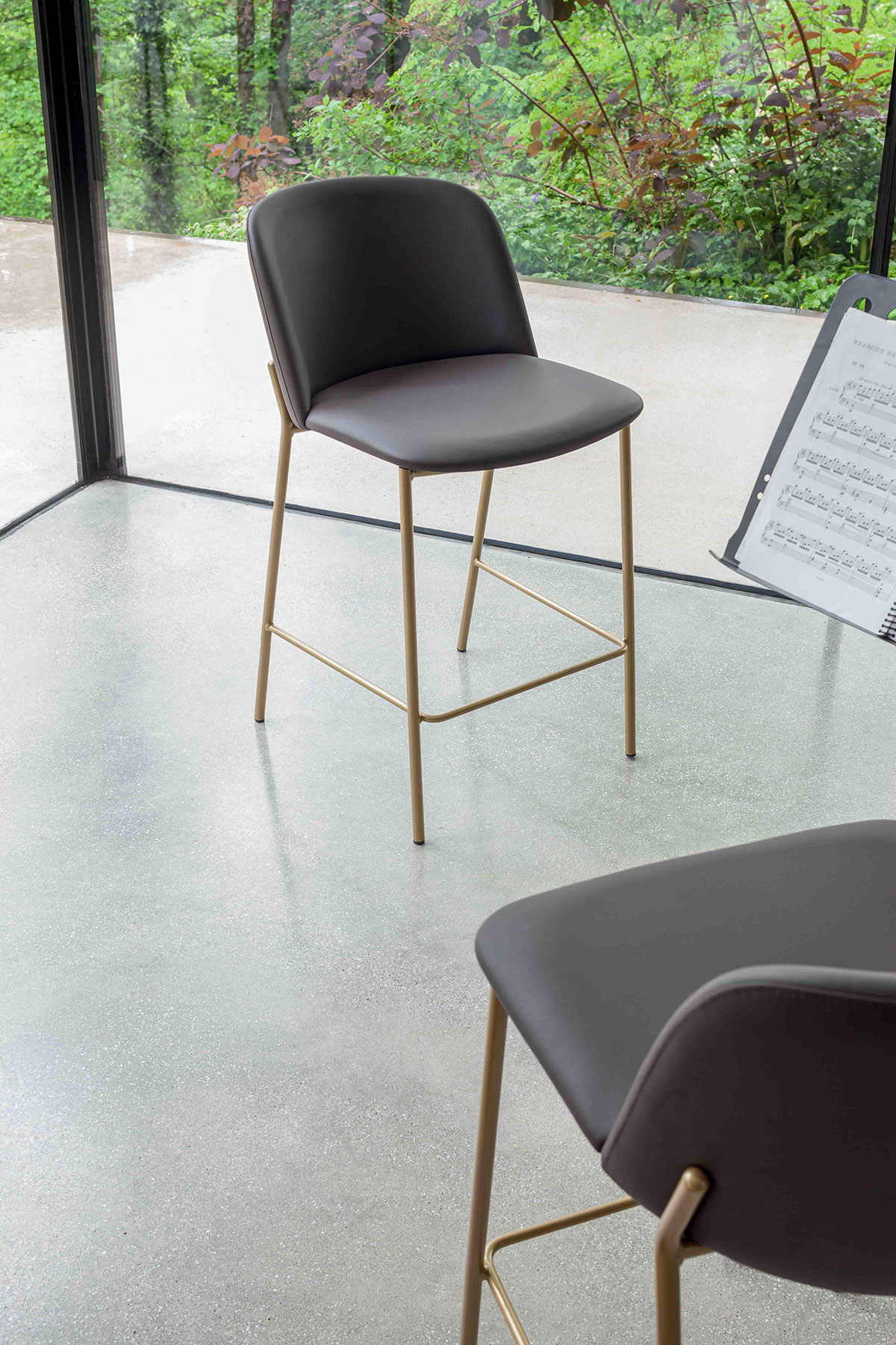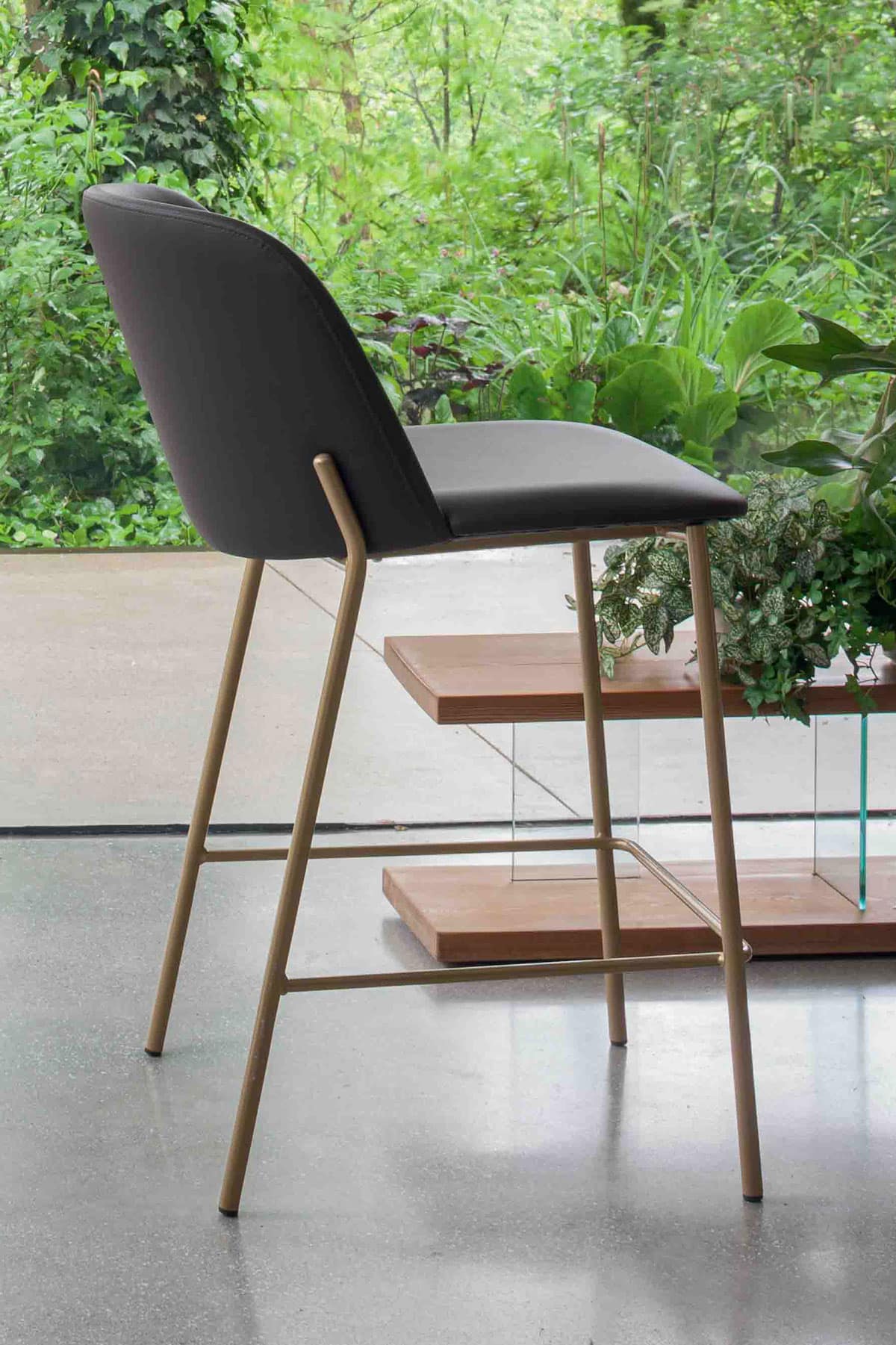Lo sgabello Clo trasforma le pause in un momento di stile, con un design raffinato e proporzioni equilibrate.