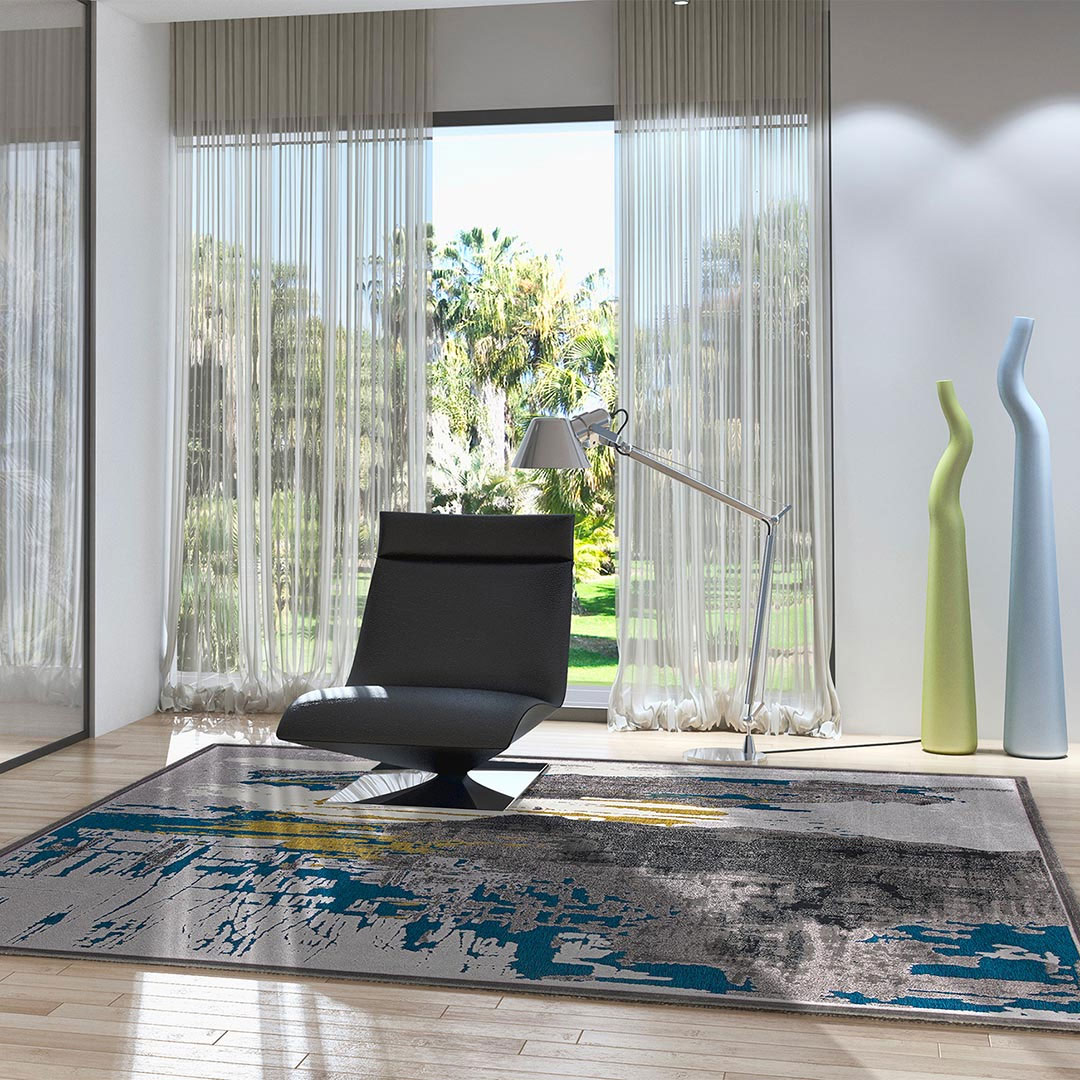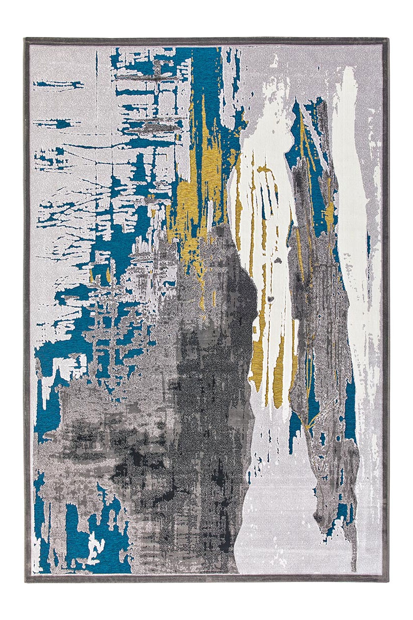 Tappeto rettangolare Gabrielle 401X/Q13 Blu Oro Grigio – astratto con rilievi