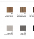 FABIUS est disponible sur demande, dans différentes finitions comme les tops en bois plaqué ou dans les couleurs noir ou moka) et structure wengé, noyer canaletto, laqué opaque à pores ouverts en différentes couleurs ( blanc, nacre, cappuccino, gris fumé, noir, rouge).